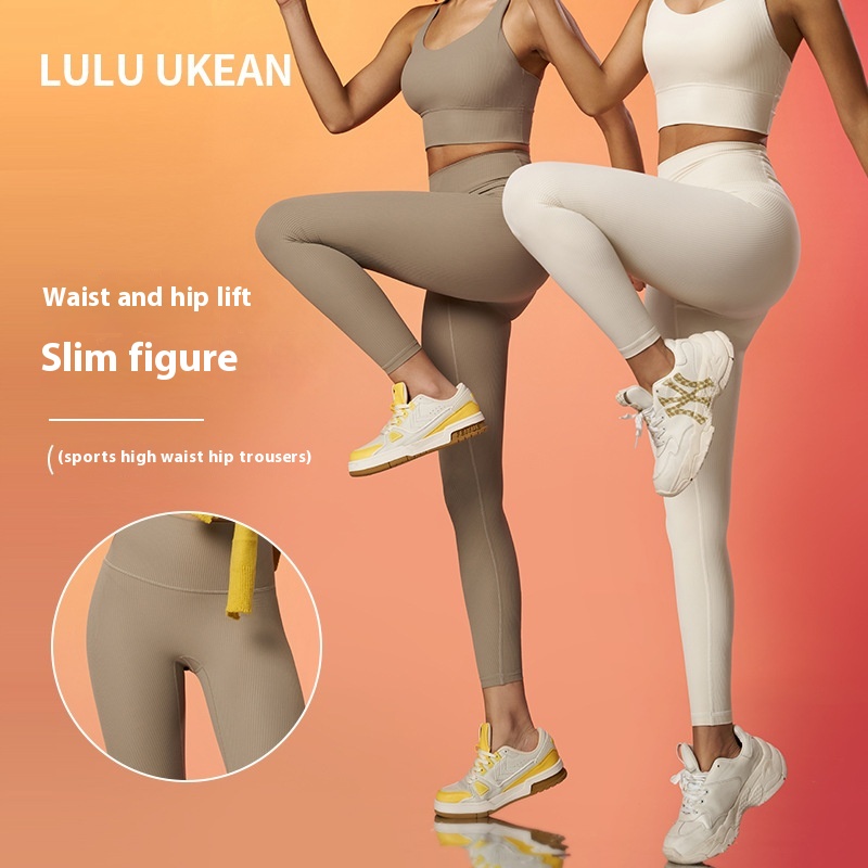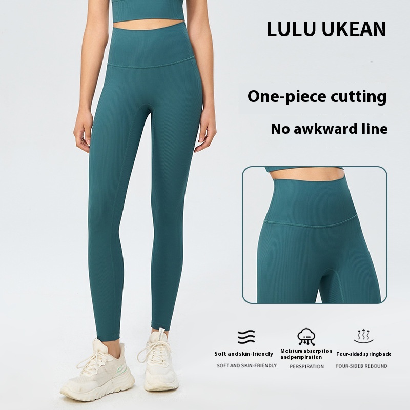 Fine Ribbed No T-line Yoga Pants High Elastic Breathable Sports Fitness Pants High Waist Tummy Lifting Hip Peach Pants For Women