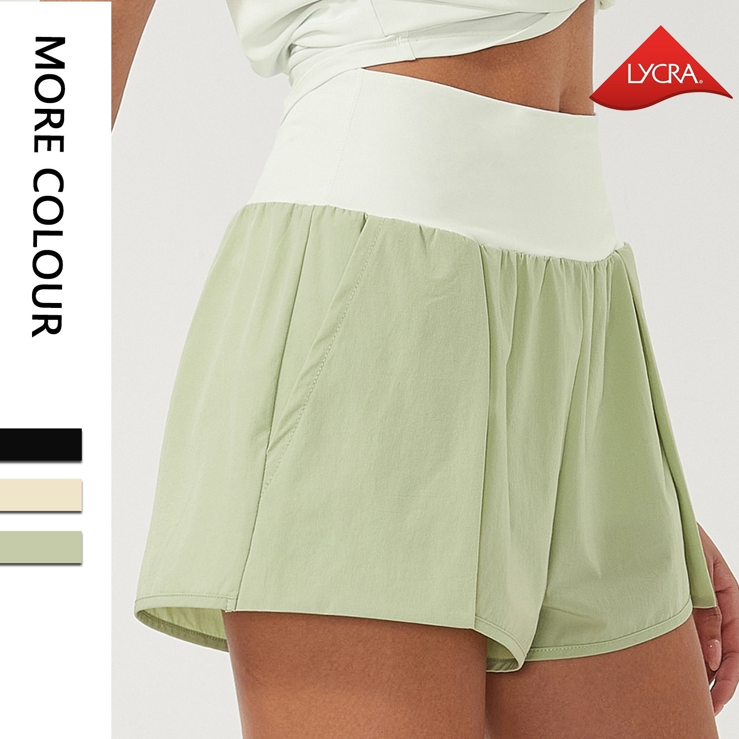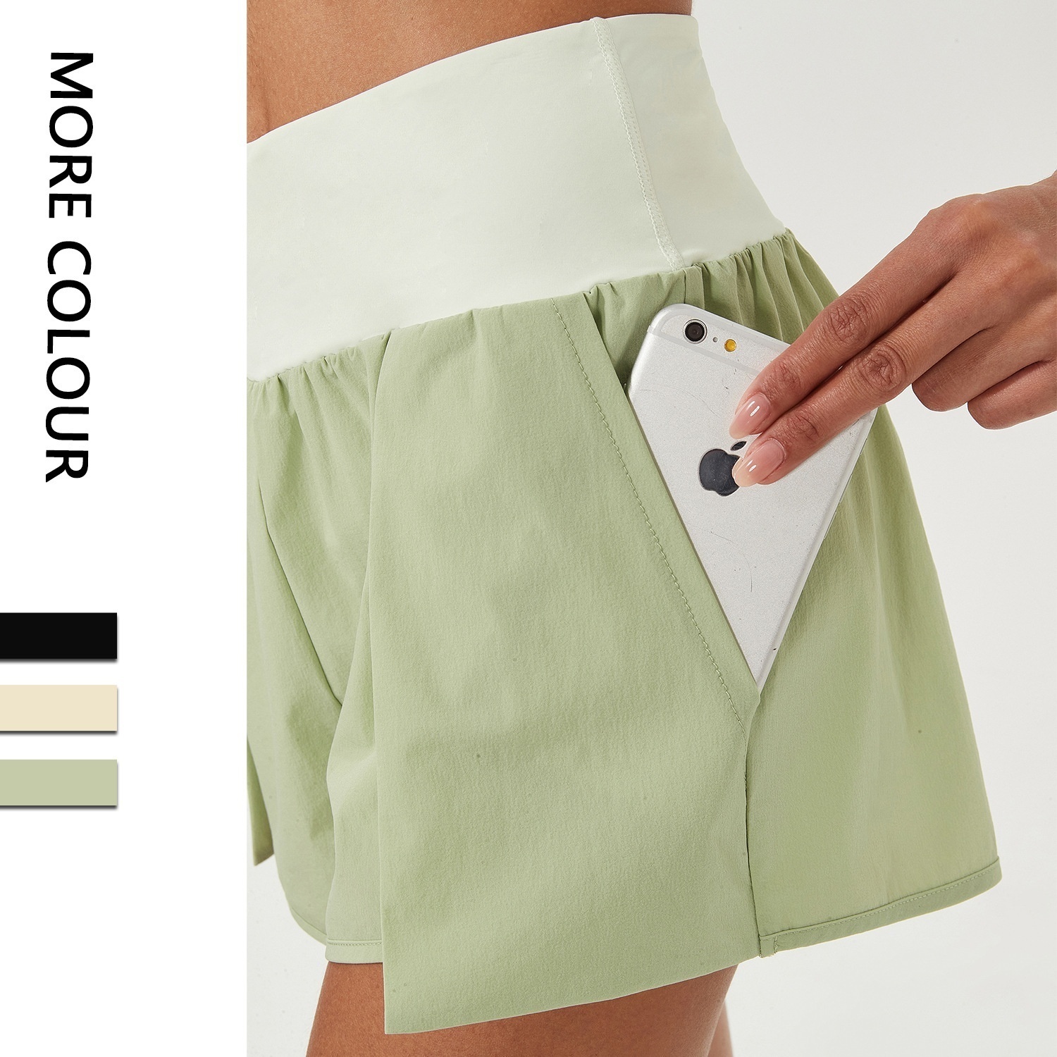 Sports Shorts Women's Nylon Lycra Loose Fitness Shorts Anti-exposure Fake Two-piece Shorts