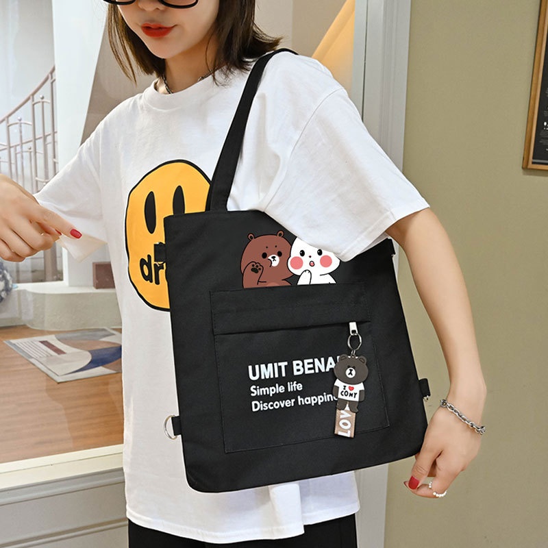 Canvas Bag Women Adjustable Messenger Bag Large Capacity Korean Version Student Zipper Schoolbag Original Backpack