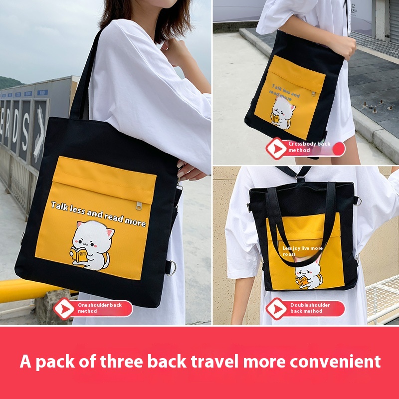 Large Capacity Shoulder Bag Female Student Tutoring Handbag Cute Multi-purpose Backpack Men's Versatile Messenger Canvas Bag