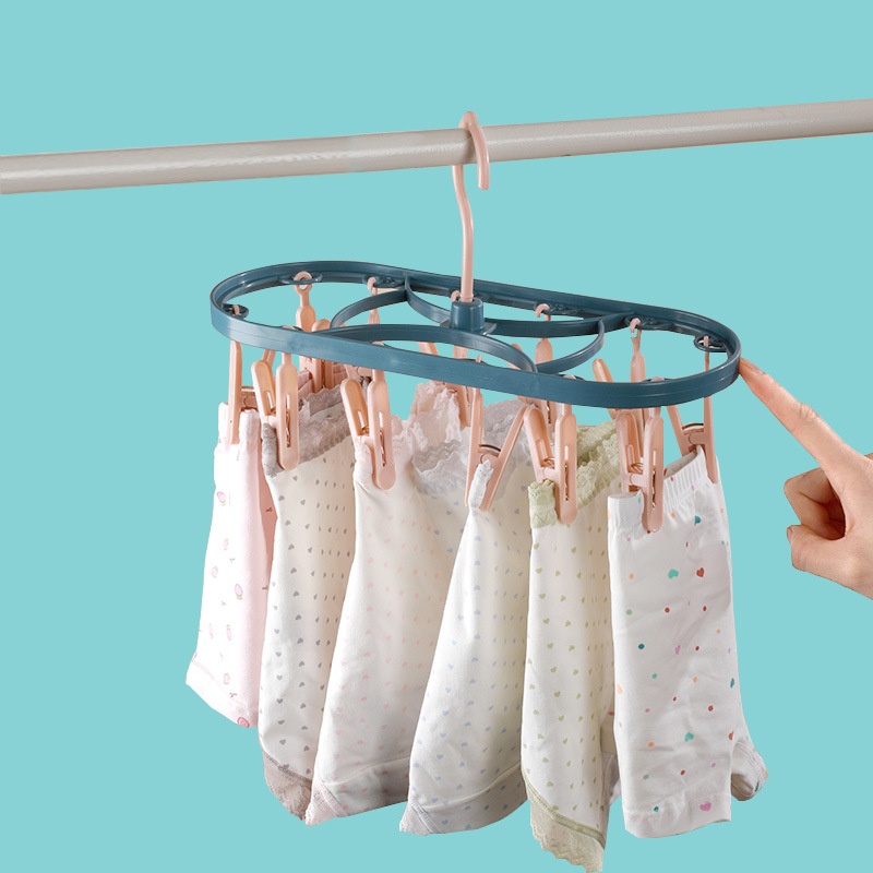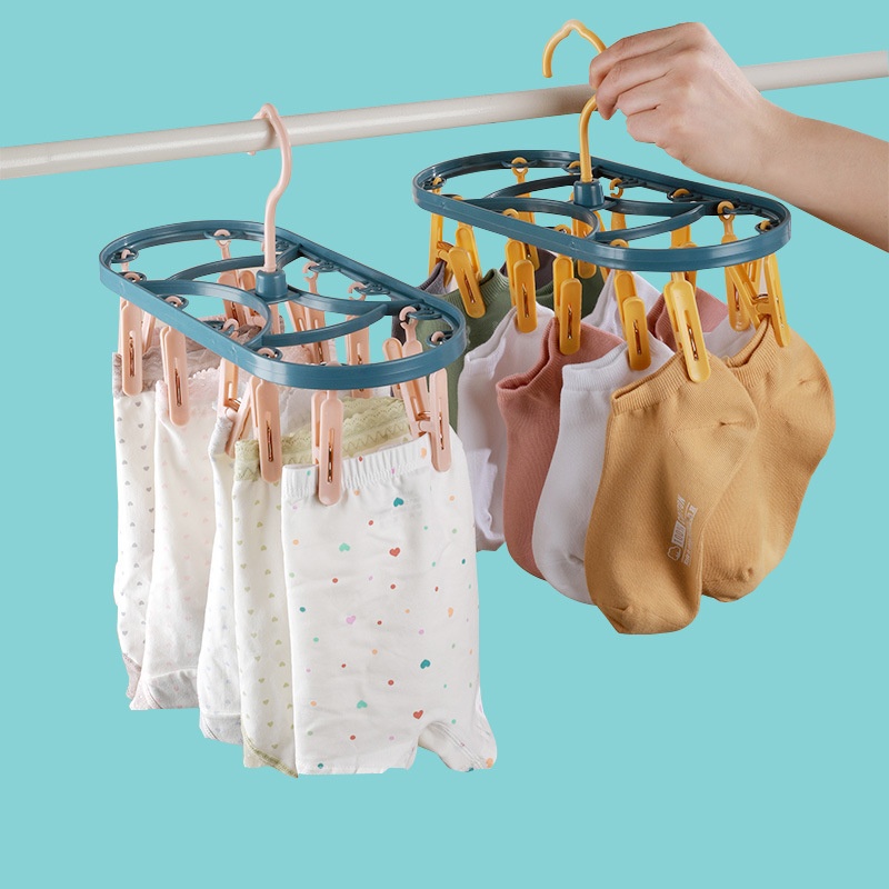 A375 Plastic Drying Rack12 Clips Windproof Multifunctional Dormitory Home Drying Underwear Clothes Rack Student Socks Rack