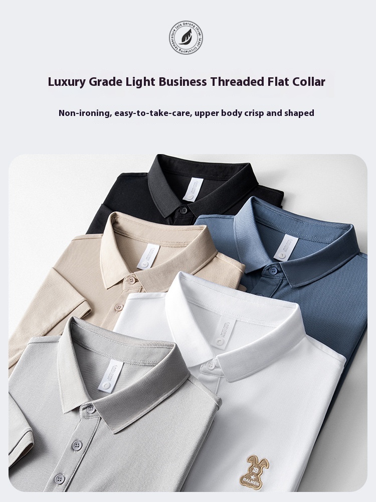 Mercerized Bead Cotton Polo Shirt Men's Summer Short Sleeve Cool Breathable Business Lapel T-shirt