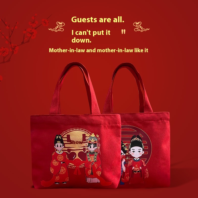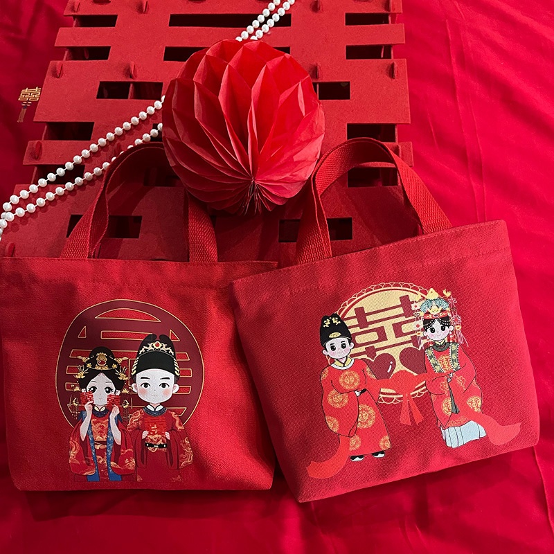 Wedding Souvenirs Wedding Candy Bag Canvas Bag Women Chinese Style Large Capacity Printed Handbag One Piece Dery