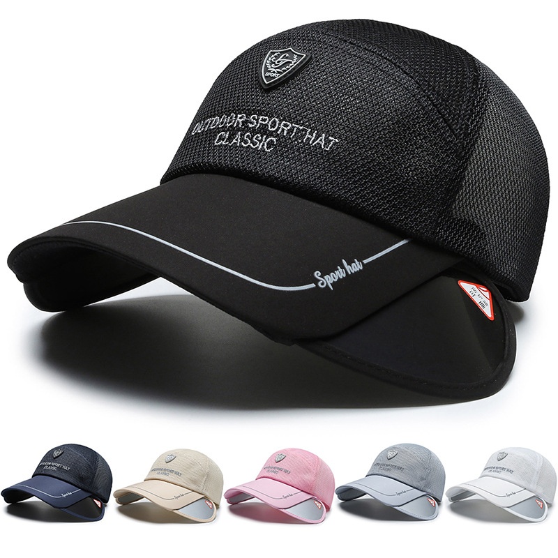 Summer Hat Men's Mesh Peaked Cap Outdoor Sun Protection Visor Women's Retractable Brim Baseball Cap Breathable Fishing Hat