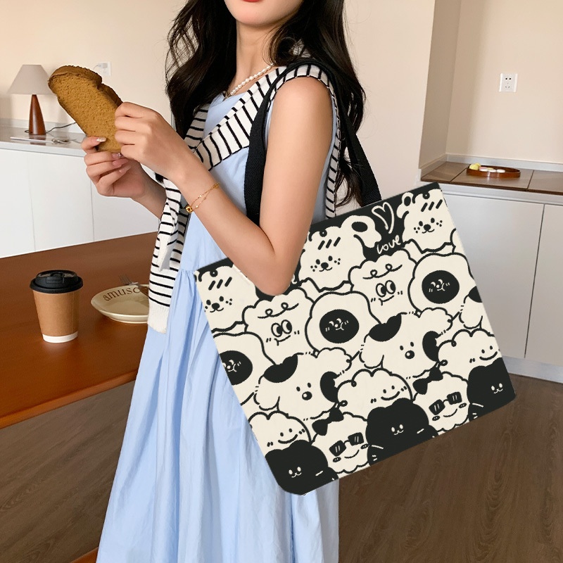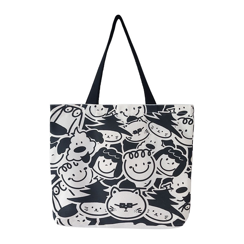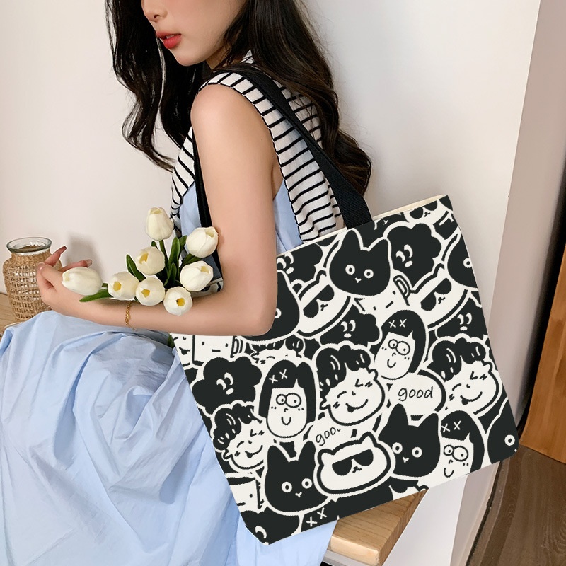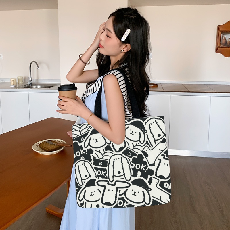 Canvas Bag Women Zipper Shoulder Bag Student Shopping Bag Commuting Leisure Large Capacity Korean Version Tutorial Bag One Piece Dery