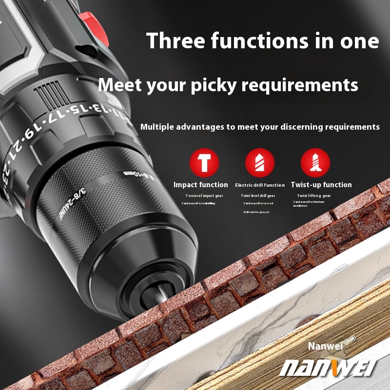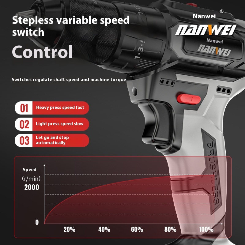 Industrial Grade Power Tools Impact Drill Rechargeable Drill Brushless Hand Drill High Power Electric Screwdriver Electric Rotary