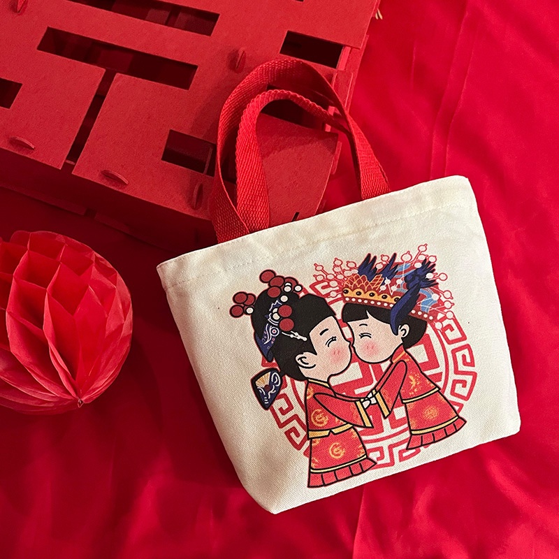 Wedding Bridesmaid Gift Bag Canvas Bag Female Full Month Gift Wedding Wine Candy Bag Handbag