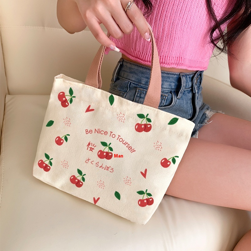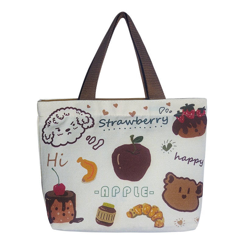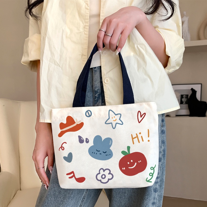 Cartoon Canvas Bag Women's Large Capacity Handbag Style Students To Bring Lunch To Work Handbag One Piece Dery