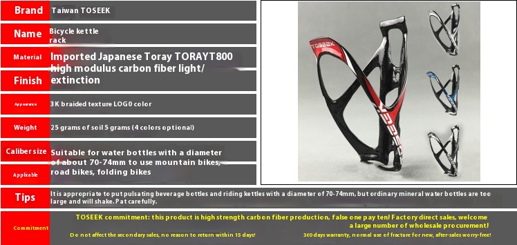 Bicycle Accessories TOSEEKCarbon Fiber A-shaped Road Mountain Bike Water Bottle Seat Bicycle Water Bottle Cage
