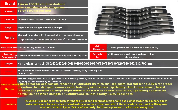 Carbon Fiber Folding Bicycle Handlebar Swallow Handlebar Straight Handlebar25.4 Small Diameter Sliding Handlebar Horizontal Children's Balance Bike Handlebar