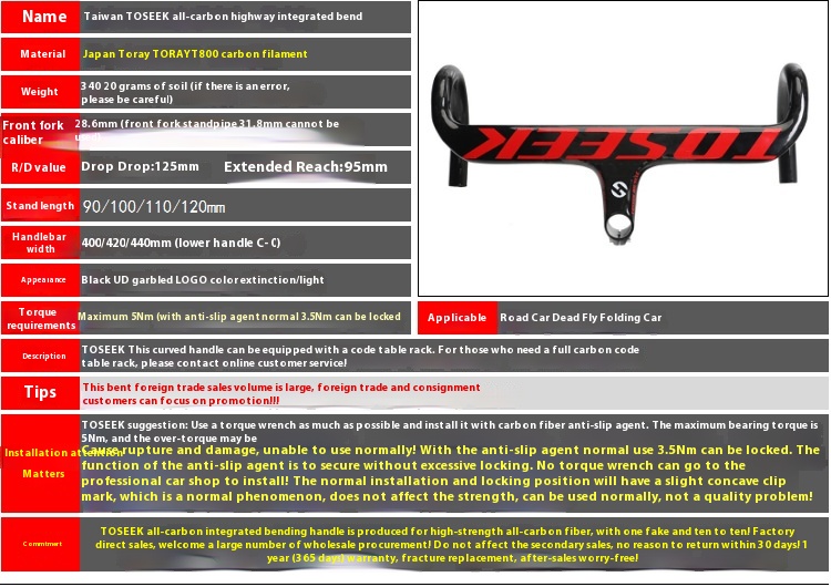 TOSEEKFull Carbon Fiber Integrated Road Bicycle Handlebar With Stem,Big Letters,Black Wind-breaking Integrated Handlebar