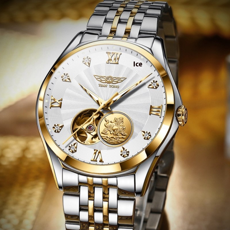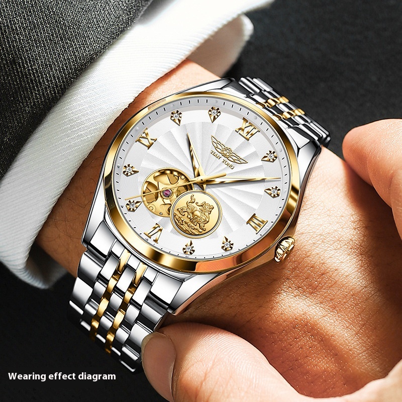 Fully Automatic Hollow-out Steel Belt Calendar Glow-in-the-dark Waterproof Men's Business Mechanical Watch