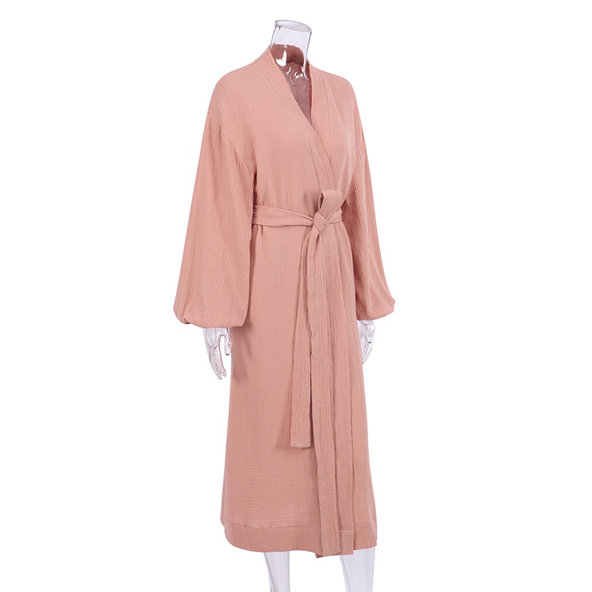 Early Spring French Solid Color Cardigan Nightgown Double Gauze Cotton Casual Fashion Home Pajamas Women's Cotton