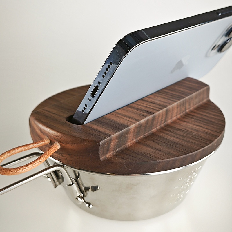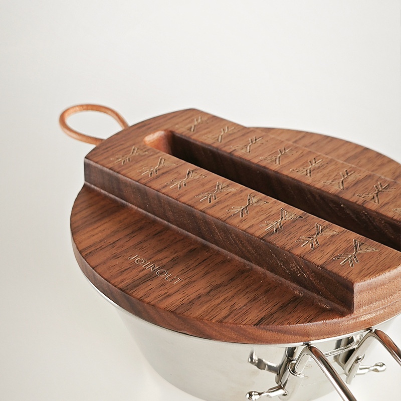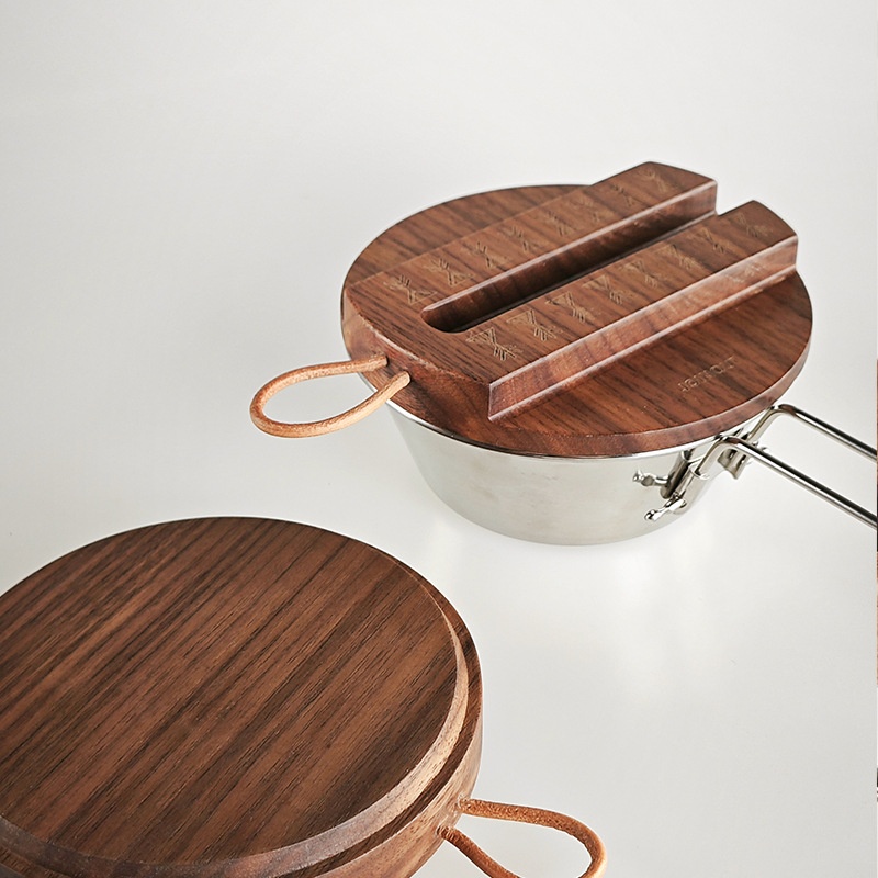 Outdoor Snow Bowl Cover Sealed With Mobile Phone Holder Pot Cover Camping Thick Traditional Wooden Anti-overflowulation Pot Cover