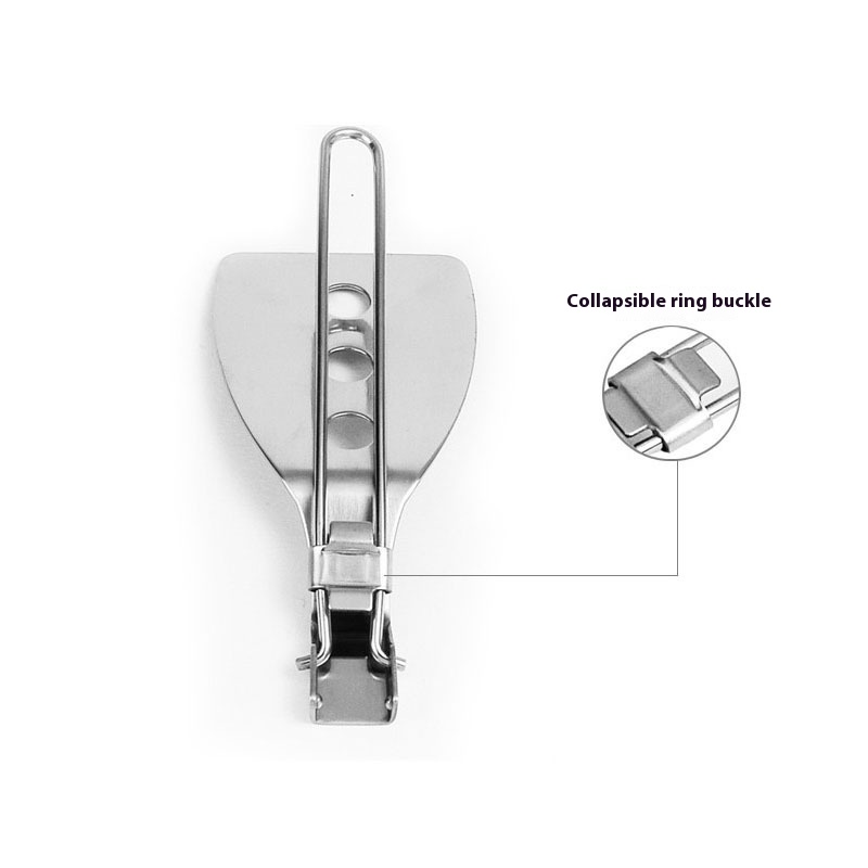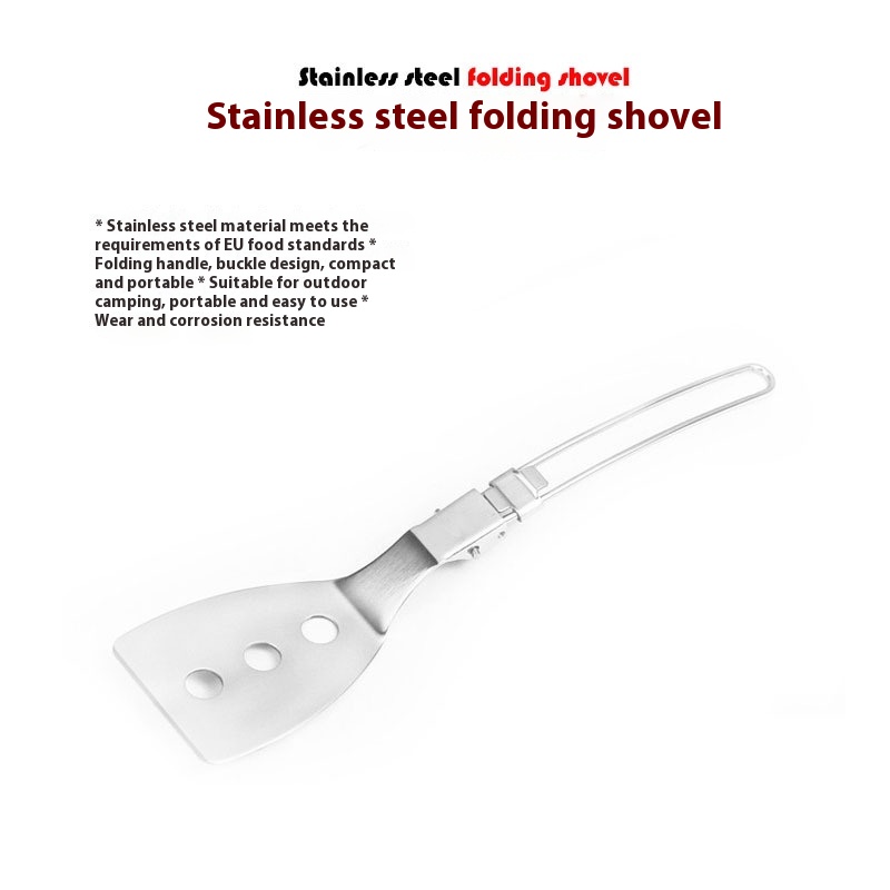 Food Grade Stainless Steel Tableware Outdoor Camping Kitchen Utensils Portable Mini Folding Frying Shovel Pot Frying Shovel Rice Shovel