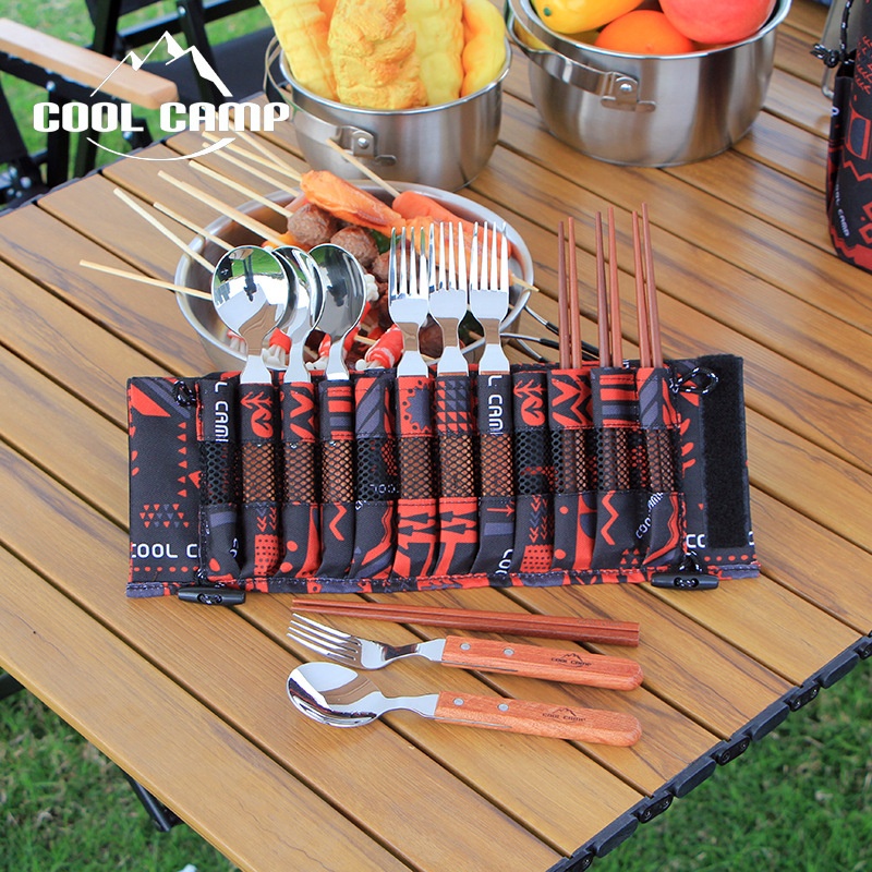 COOLCAMP304 Stainless Steel Wooden Handle Cutlery Set For4 People Picnic Barbecue Portable Outdoor Camping Spoon Fork Chopsticks