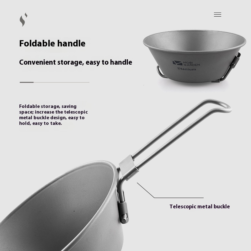 Mogodi Outdoor Camping Portable Hiking Titanium Single Person Portable Foldable Single Layer Titanium Bowl Picnic Bowl