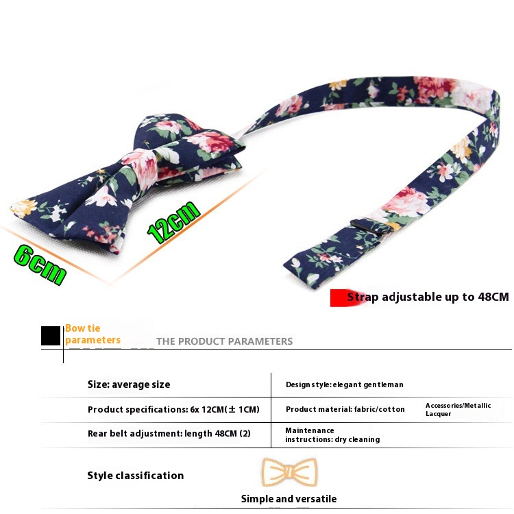 Cotton Bow Tie Korean Men's Suit Retro Pattern Bow Tie British European And American Small Floral Bow Tie