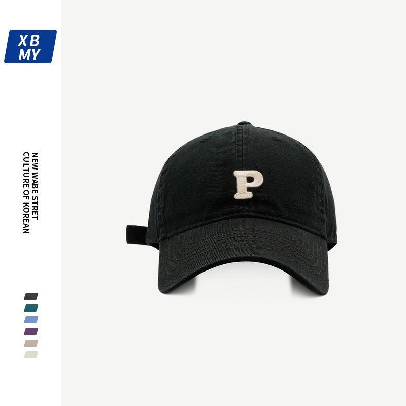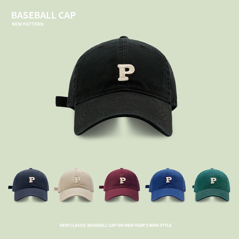 Korean Version Of The Letter PDuckbill Cap Women's Soft Top Large Head Circumference Baseball Cap Pure Cotton Face Small Sun Protection Sun Hat