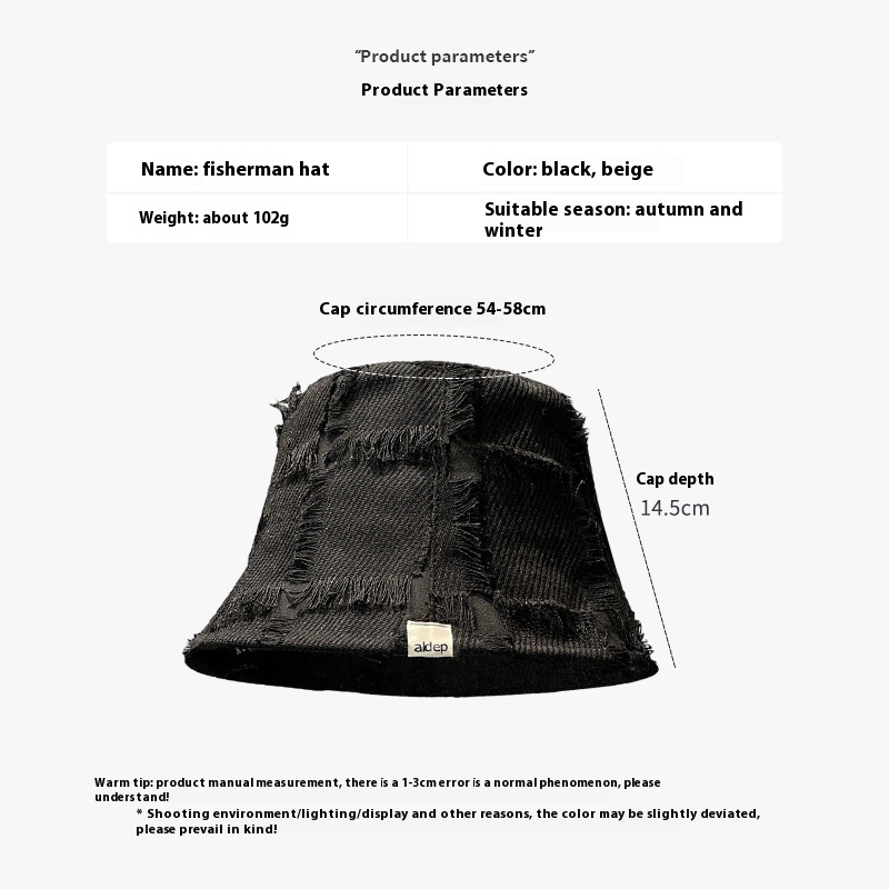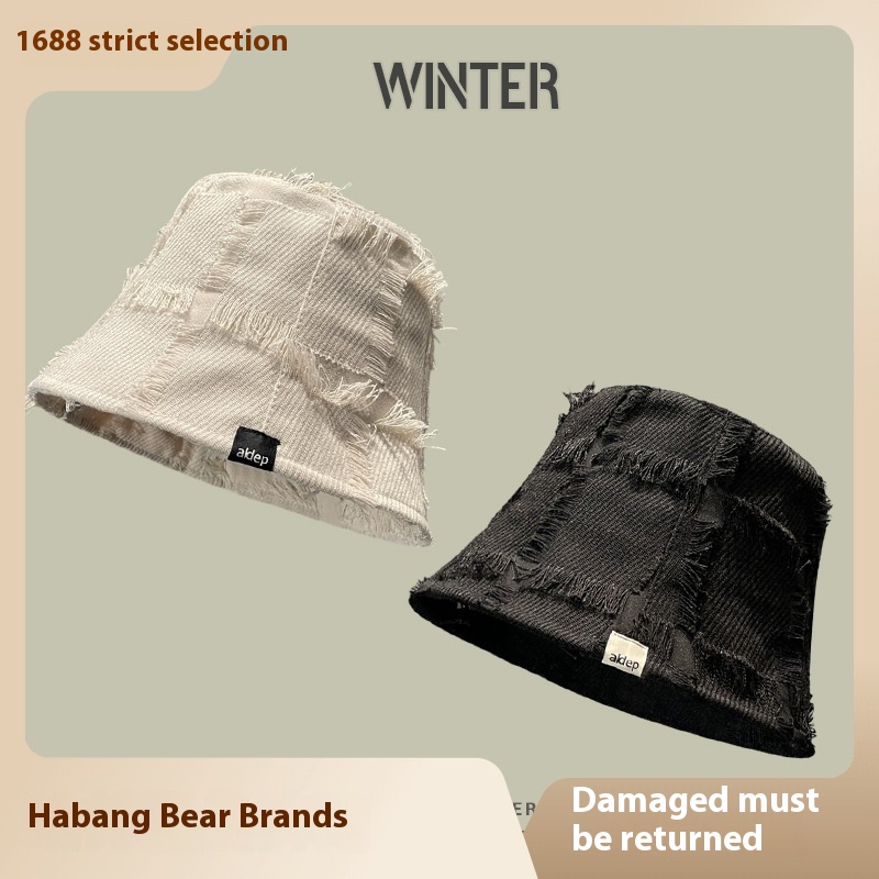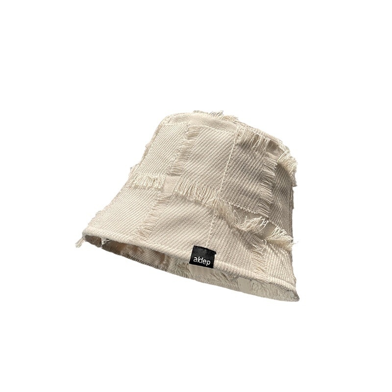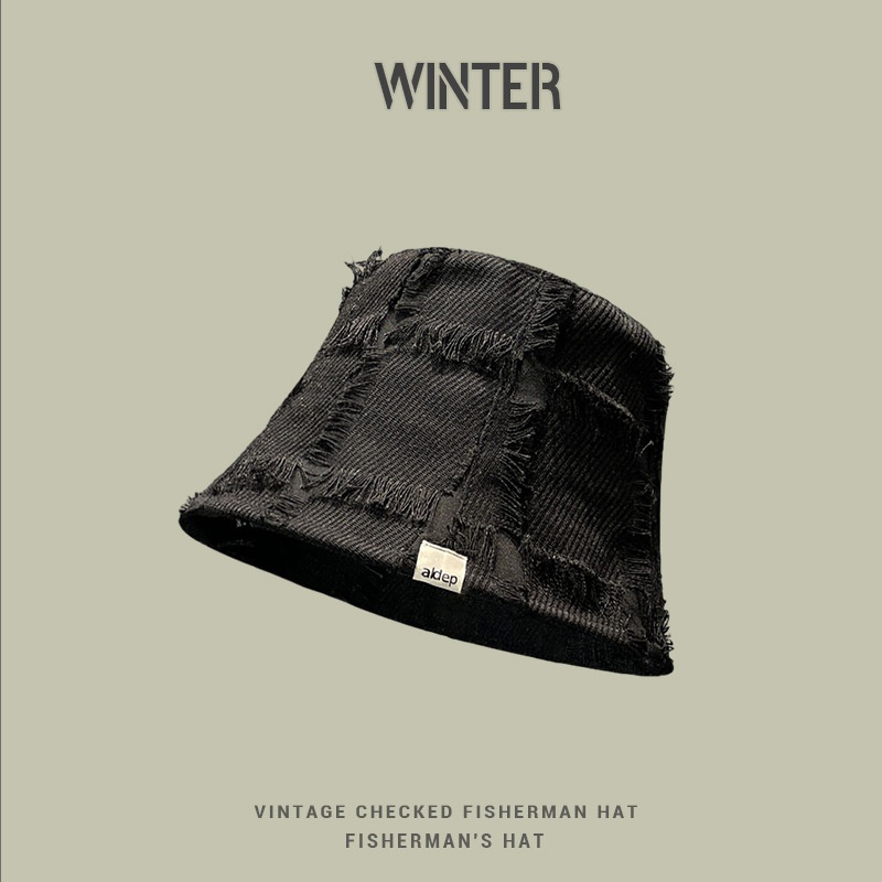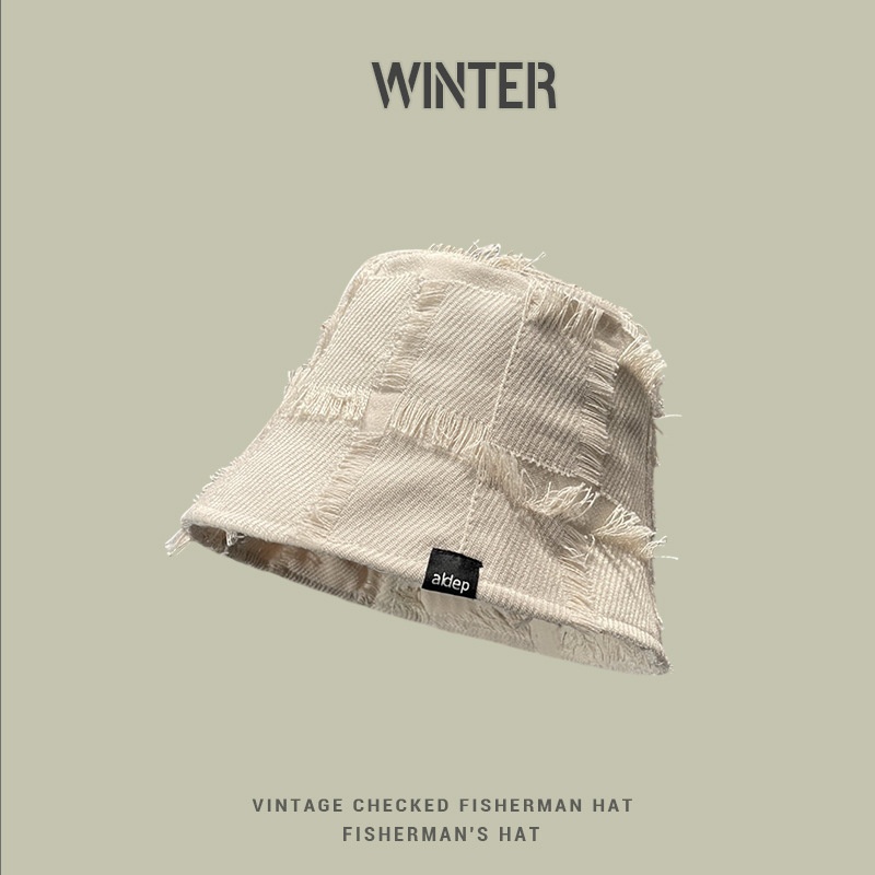 Japanese Harajuku Style Spring And Autumn Basin Hat For Women,Rough Edge Plaid Bucket Hat,Small Face,Casual And Versatile Fisherman Hat For Women