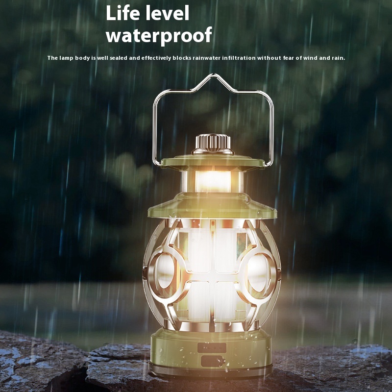 High-end Retro Style Camping Multi-function Rechargeable Camping Lantern Lighting Atmosphere Lamp Outdoor Waterproof