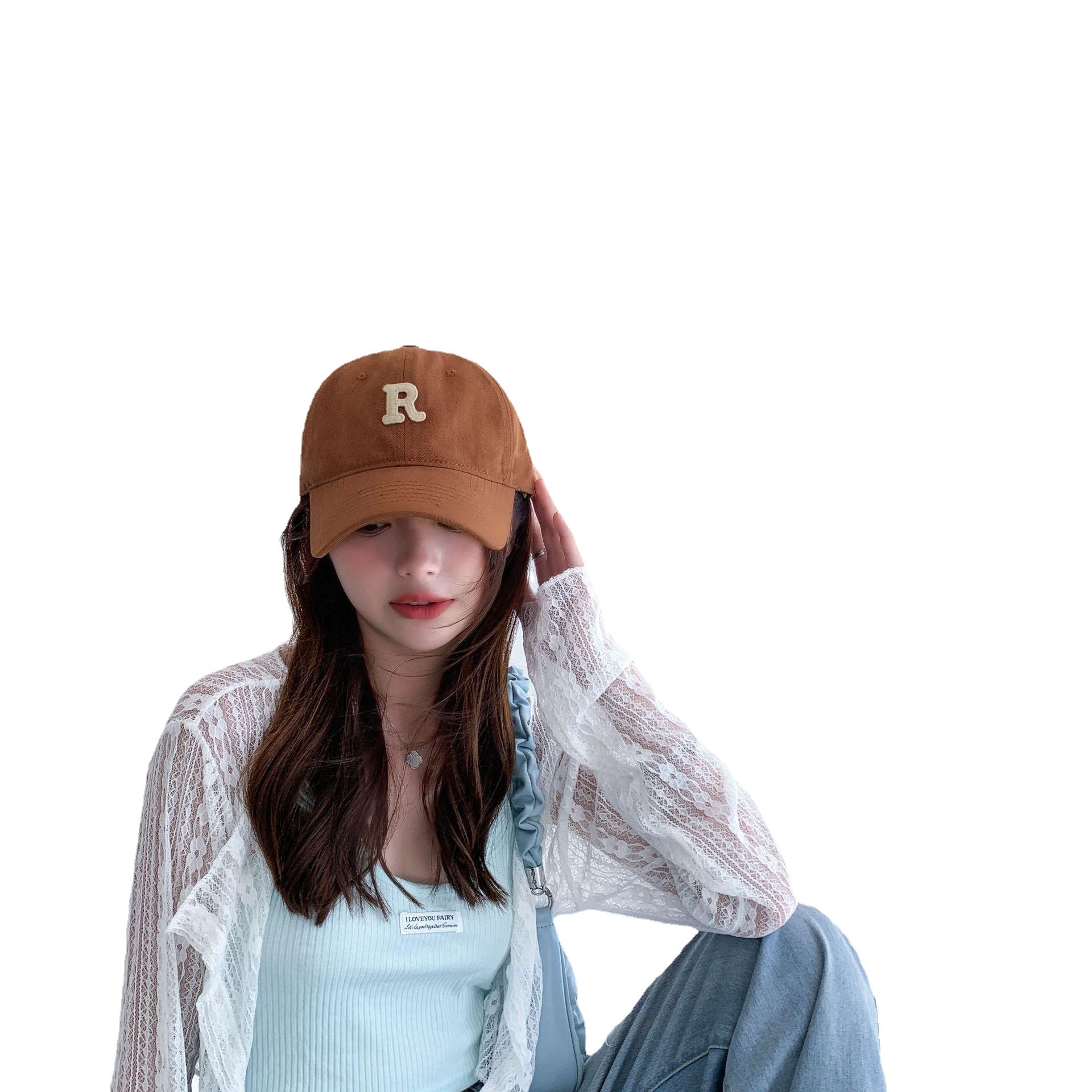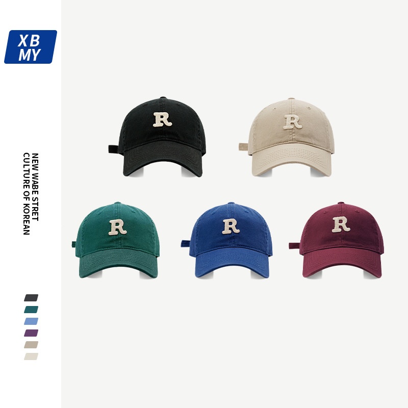 RLetter Embroidered Soft Top Baseball Cap For Men Korean Version Niche Large Head Circumference Small Face Four Seasons All-match Duckbill Cap For Women