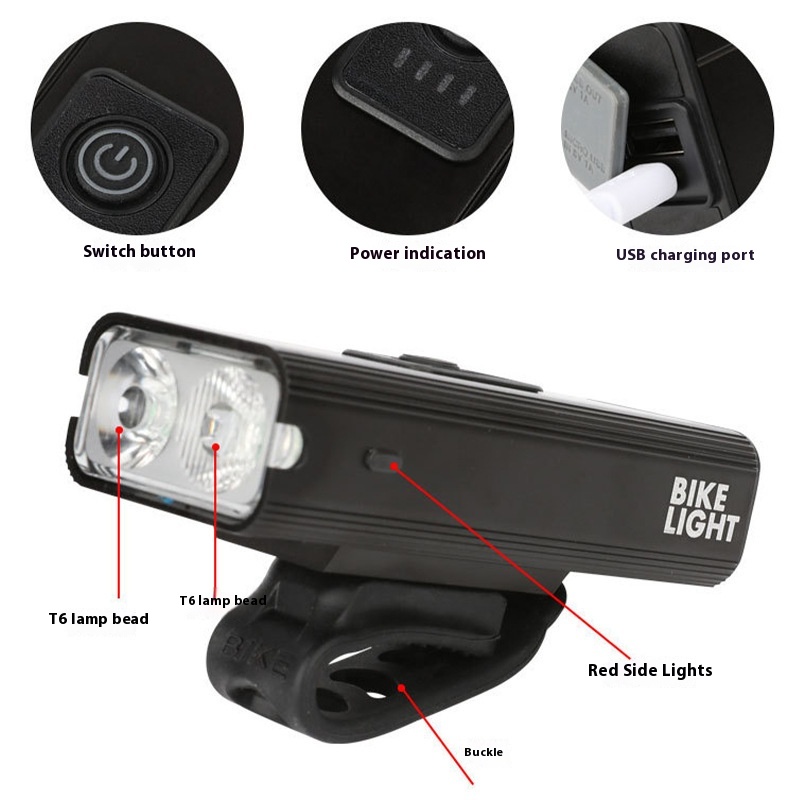 Bicycle Light Road Bike Aluminum Alloy Front Light Outdoor Waterproof Emergency T6 Strong Light Flashlight Mountain Bike Riding Light