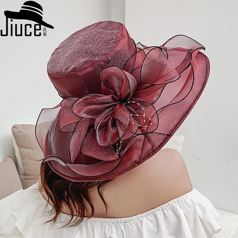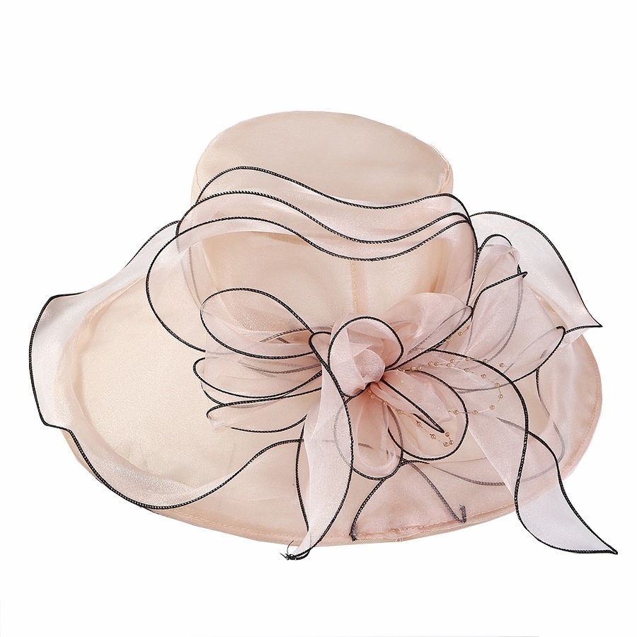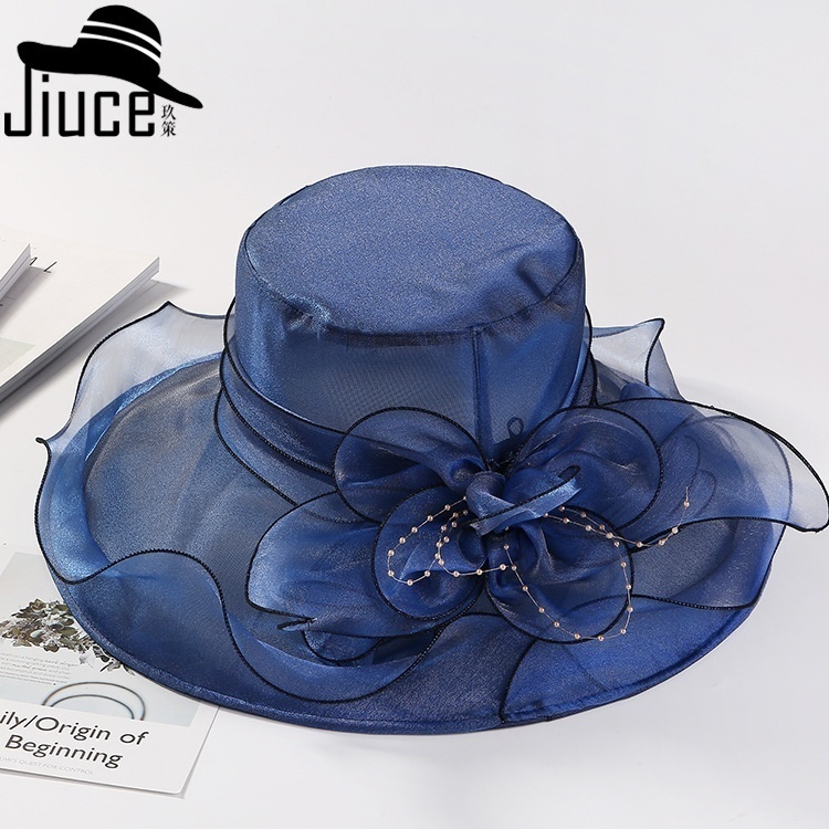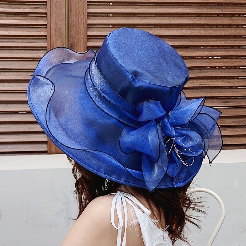 Summer Organza Light Breathable Flower Wide Brim Hat For Women Fashion Wave Brim Face Protection Sun Hat