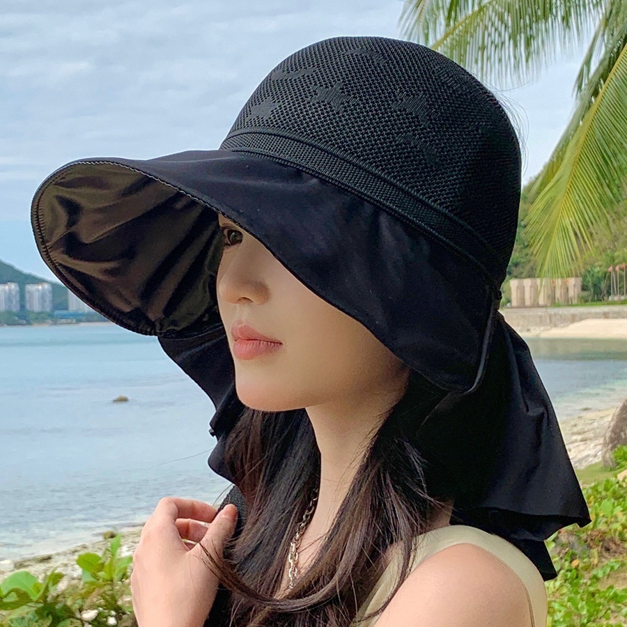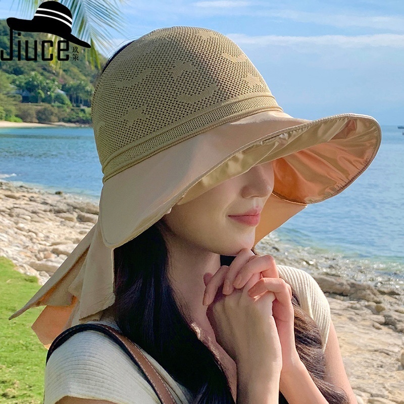 Summer Style Ice Color Matching Large Brim Shawl Sun Hat Women's Outdoor Sun Protection Face Protection Neck No Top Sun Hat