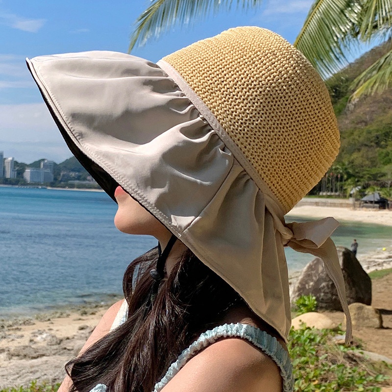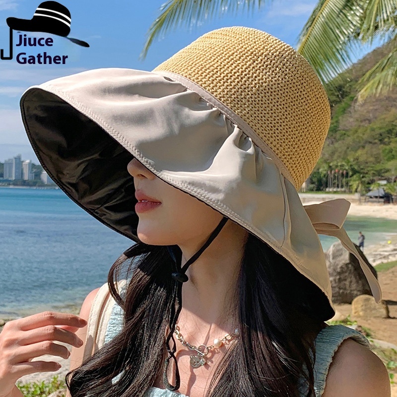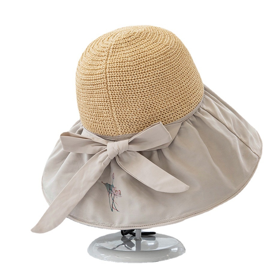 Retro Chinese Style Elegant Lotus Splicing Sun Protection Wide Brim Hat For Women Summer Versatile Casual Face Covering Black Vinyl Sun Hat