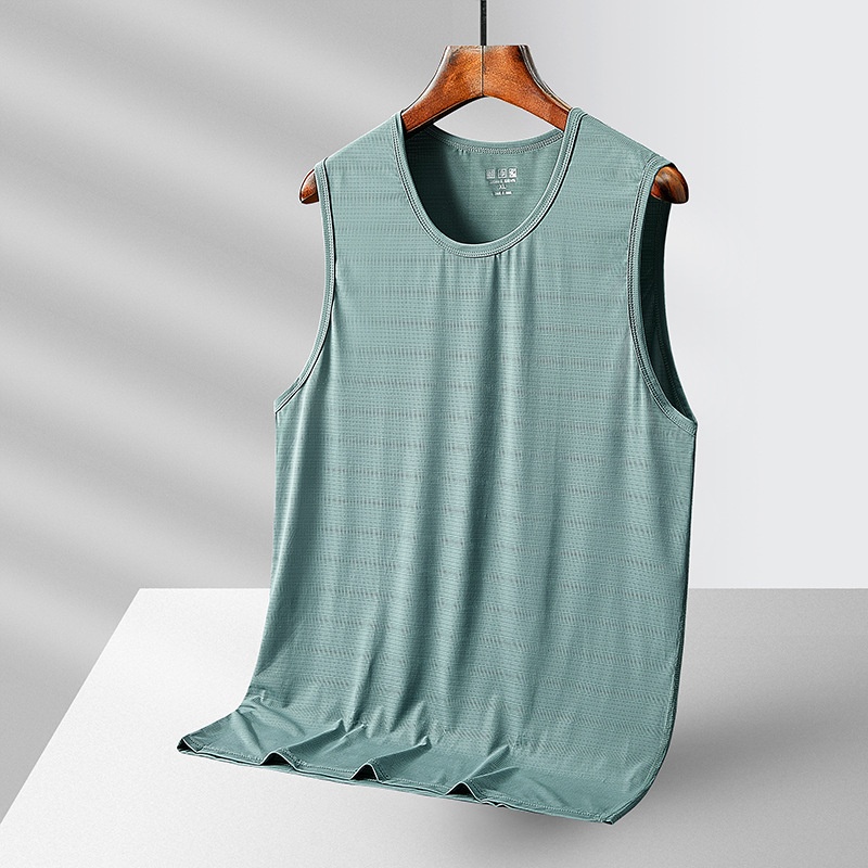 Ice Silk Men's Seamless Vest Summer Large Size Loose Mesh Waistcoat Outer Wear Sports Breathable T-shirt