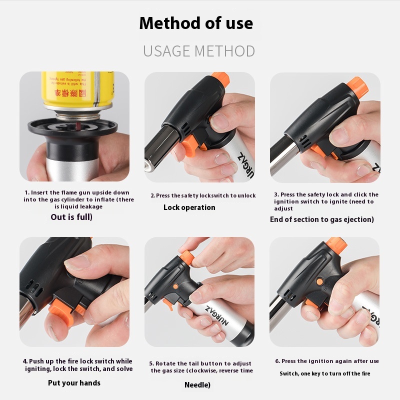 NURGAZOutdoor Portable Ignition Gun Straight Into The Flamethrower Welding Gun Barbecue Kitchen Lighter Baking Ignition