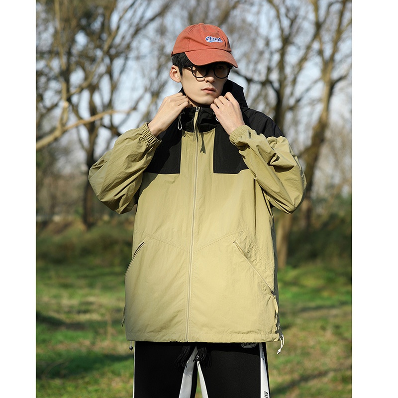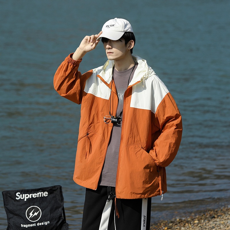 UPF50+Summer Sun Protection Clothing Men's Thin Hooded Ice Silk Breathable Anti-ultraviolet Couple Loose Jacket