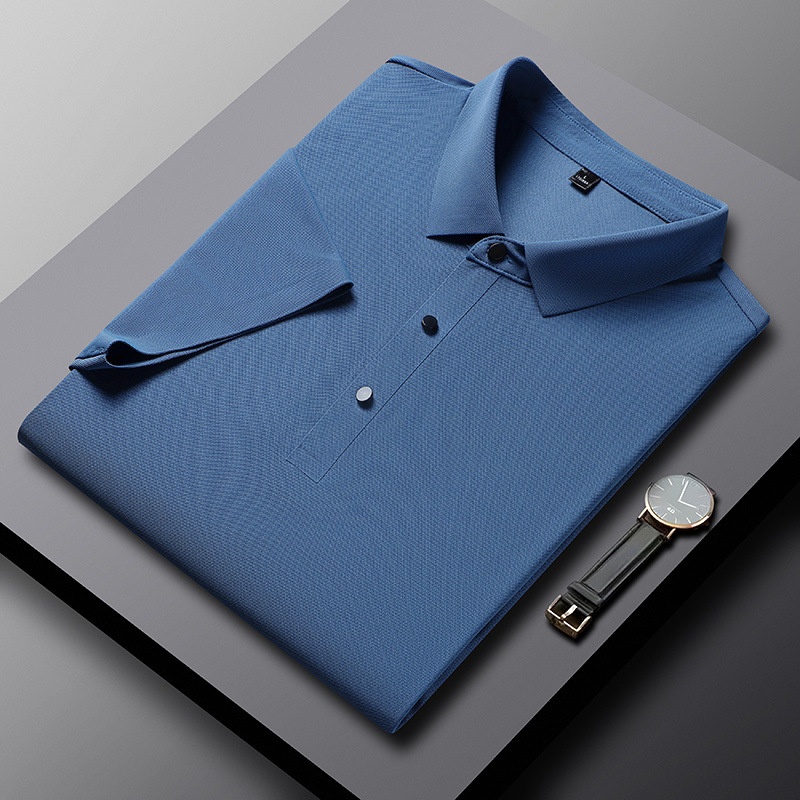 Ice Silk Summer Lapel Polo Shirt Men's Seamless Free Ironing Morning Casual Short-sleeved Suit Couple Wear High-end T-shirt