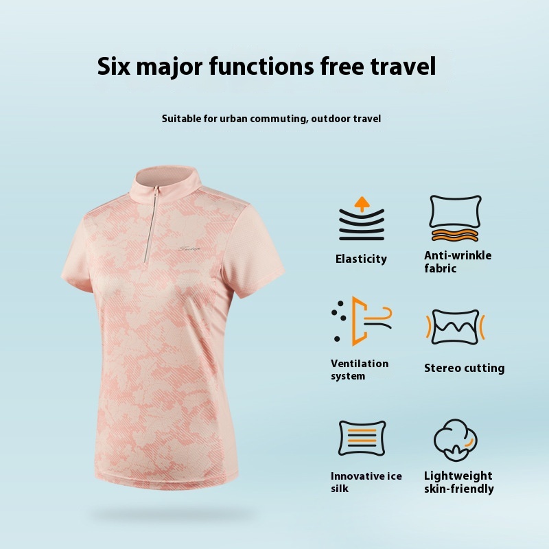 Outdoor Quick-drying T-shirt Women's Summer Thin Running Fitness Sweat-absorbent Ice Silk Short-sleeved Stretch T-shirt Sports Top