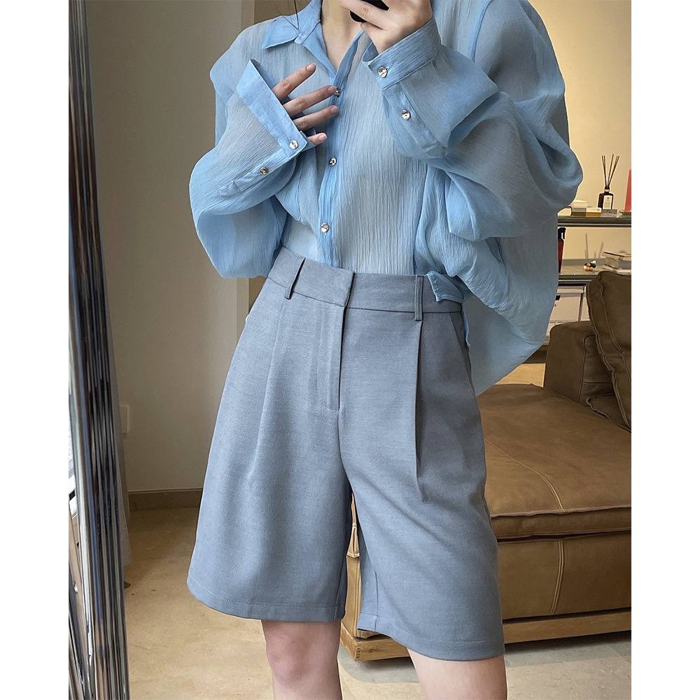 Spring And Summer Korean Version Fashionable High Waist Suit Pants Loose A-line Slim And Crisp Casual Shorts For Women