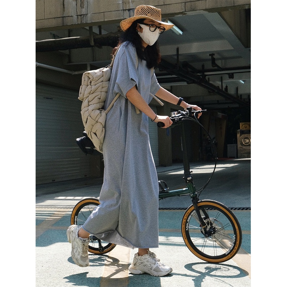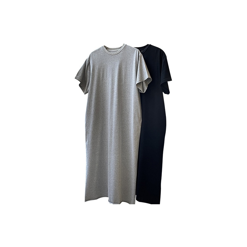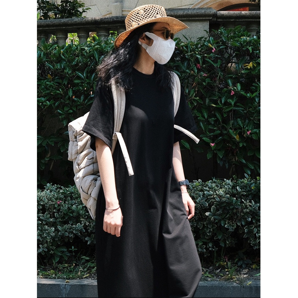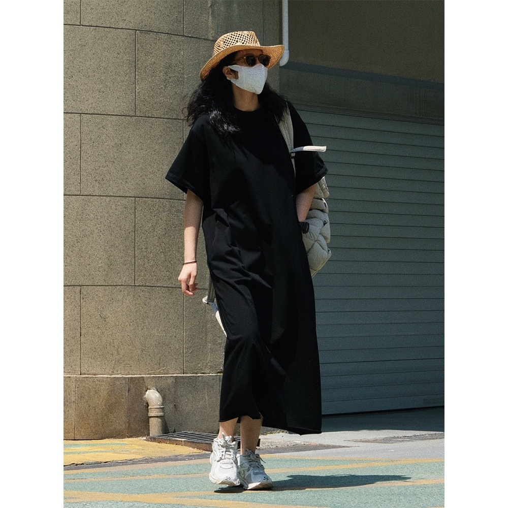 Summer Korean Version Of Casual Sports Style Short-sleeved T-shirt Dress Loose Slim Straight Curling Lazy Long Skirt For Women