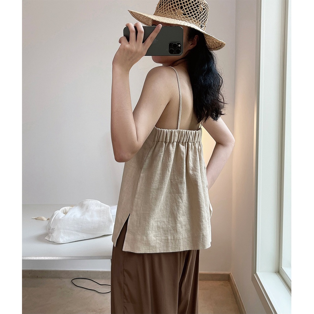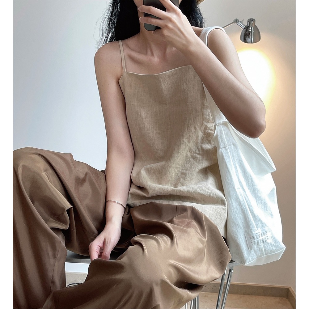 Summer Korean Style Literary Style Linen Cool Small Sling Loose Slim One-shoulder Casual Sleeveless Vest For Women