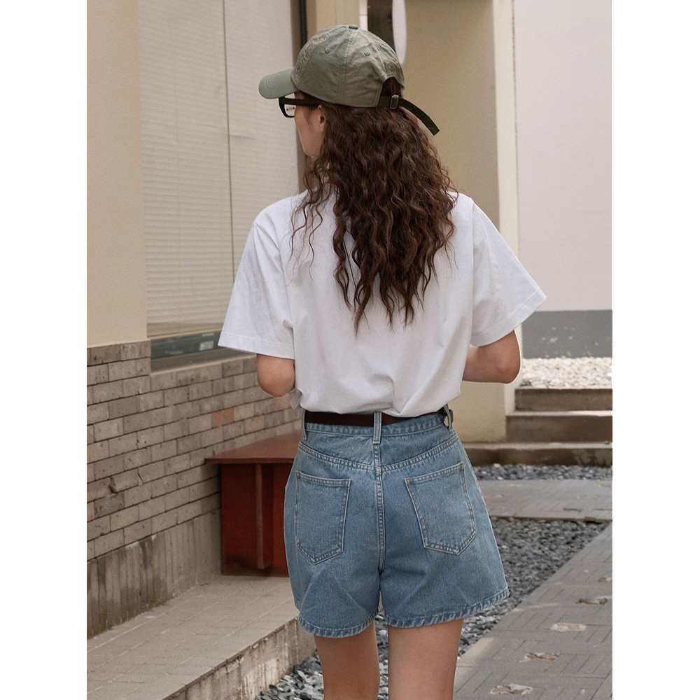 Louvre Summer Korean Retro Casual High Waist Wide Leg Denim Shorts Loose Thin Slim Hot Pants Women