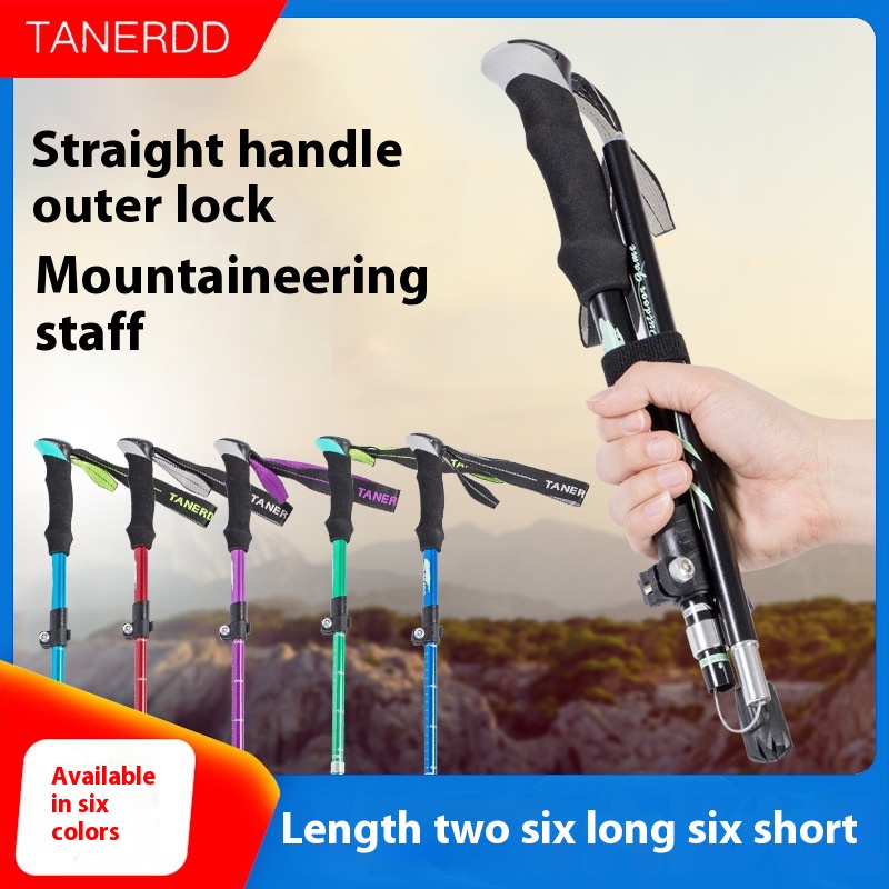 Outdoor Trekking Pole Aluminum Alloy Folding Ultra-light Ultra-short Telescopic Outdoor Handcuffs Hiking Walking Stick Hiking Pole