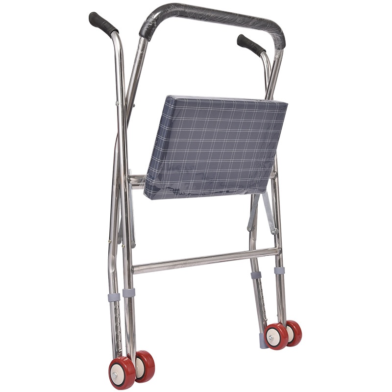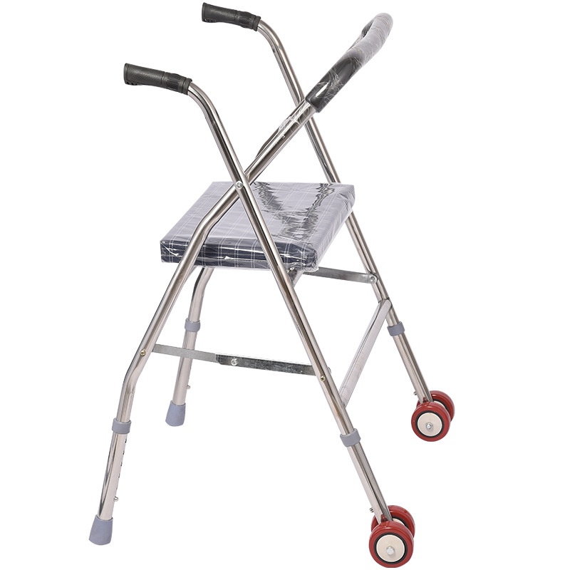 Stainless Steel Foldable Walker With Wheels. Crutch Stool Twisting Wheel Sit Walker With Adjustable Height