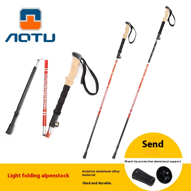 Outdoor Trekking Pole With External Lock5-section Folding Pole7075 Aluminum Alloy Crutch Mini Cane AT7559