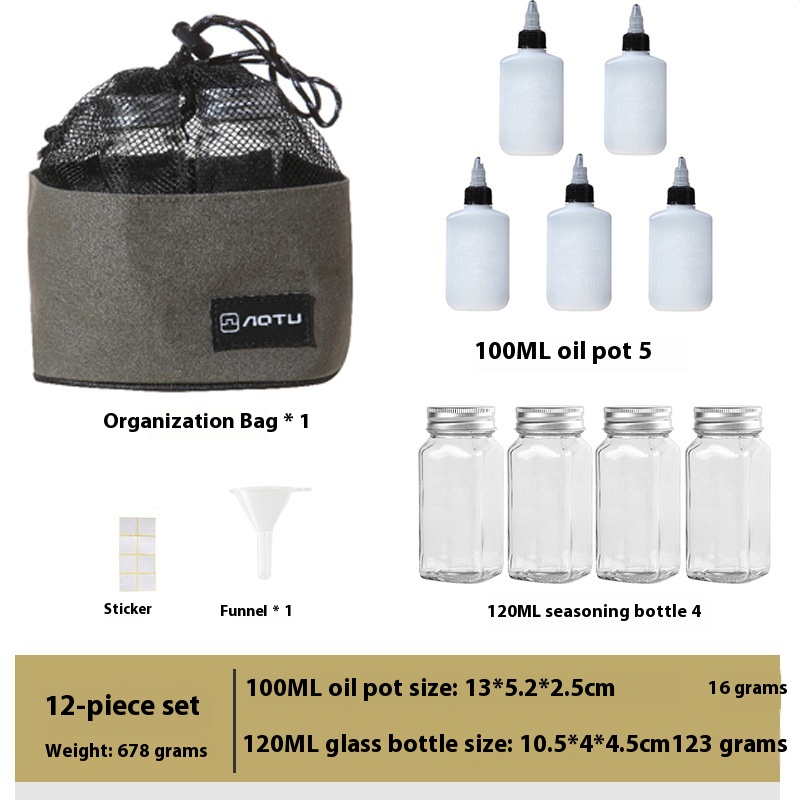 Outdoor Portable Seasoning Bottle Set Camping Picnic Seasoning Sub-can Sealed Oil Bottle Combination Seasoning Storage Bag