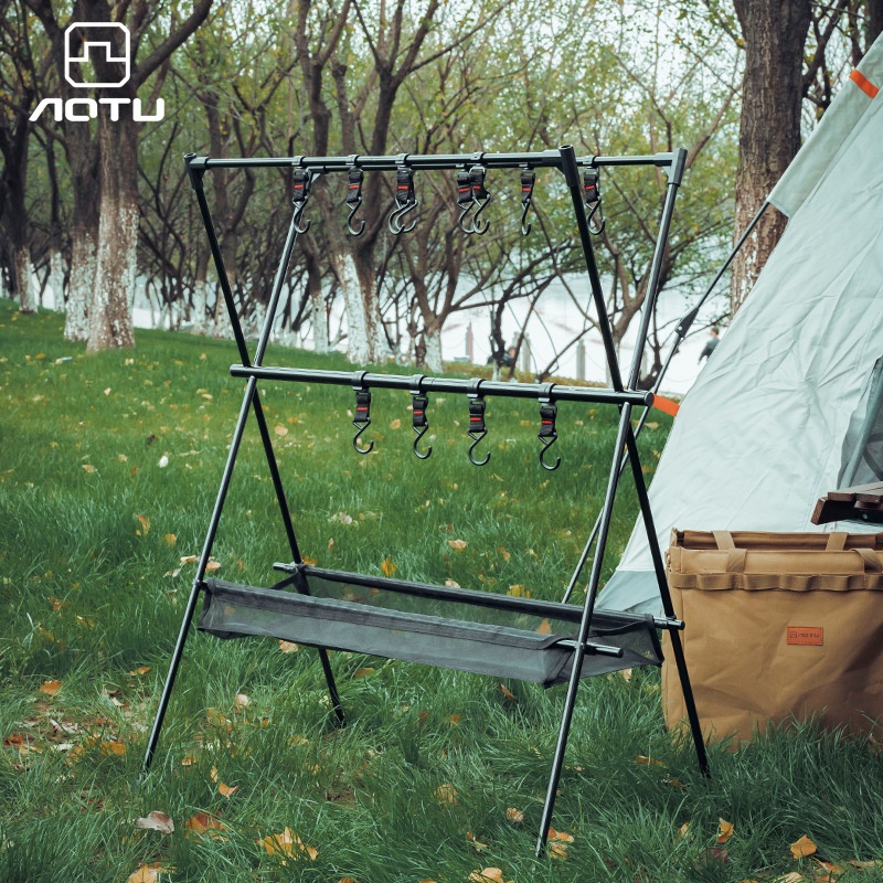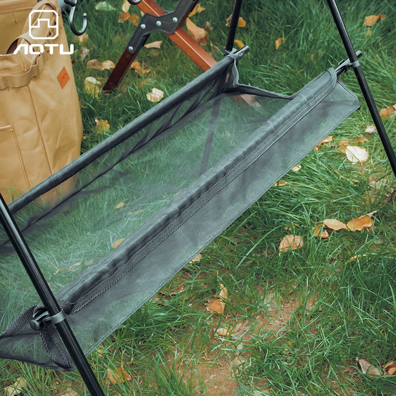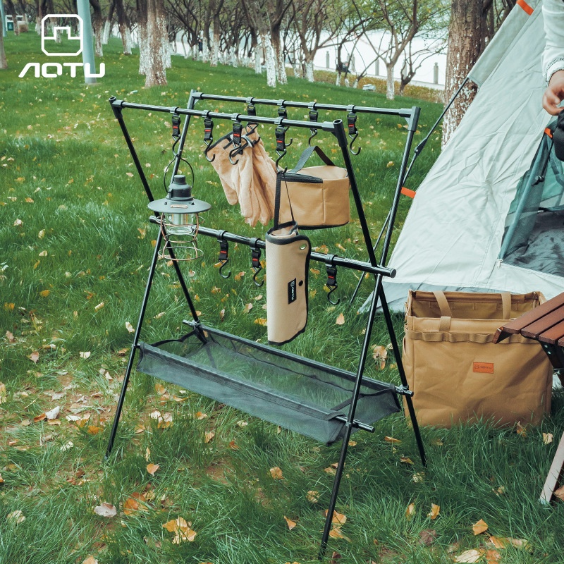 Outdoor Portable Double-layer Camping Rack Travel Camping Tripod Rack Desktop Storage Hanging With Net Bag