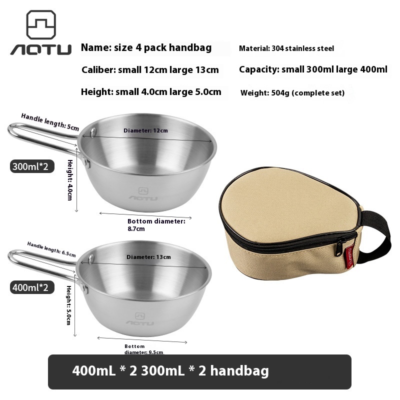Outdoor304 Stainless Steel Snow Bowl Camping Cookware Picnic Barbecue Tableware Coffee Cup Mountaineering Water Cup Snow Cup