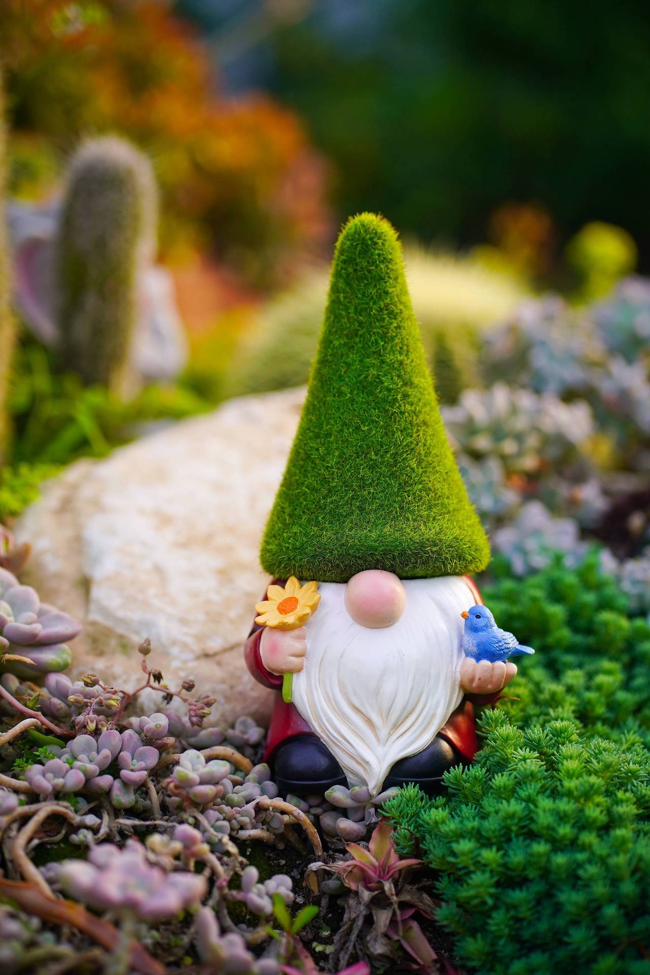 Garden Dwarf Dwarf Statue Flocking Green Hat White Beard Goblin Garden Decoration Resin Ornaments
