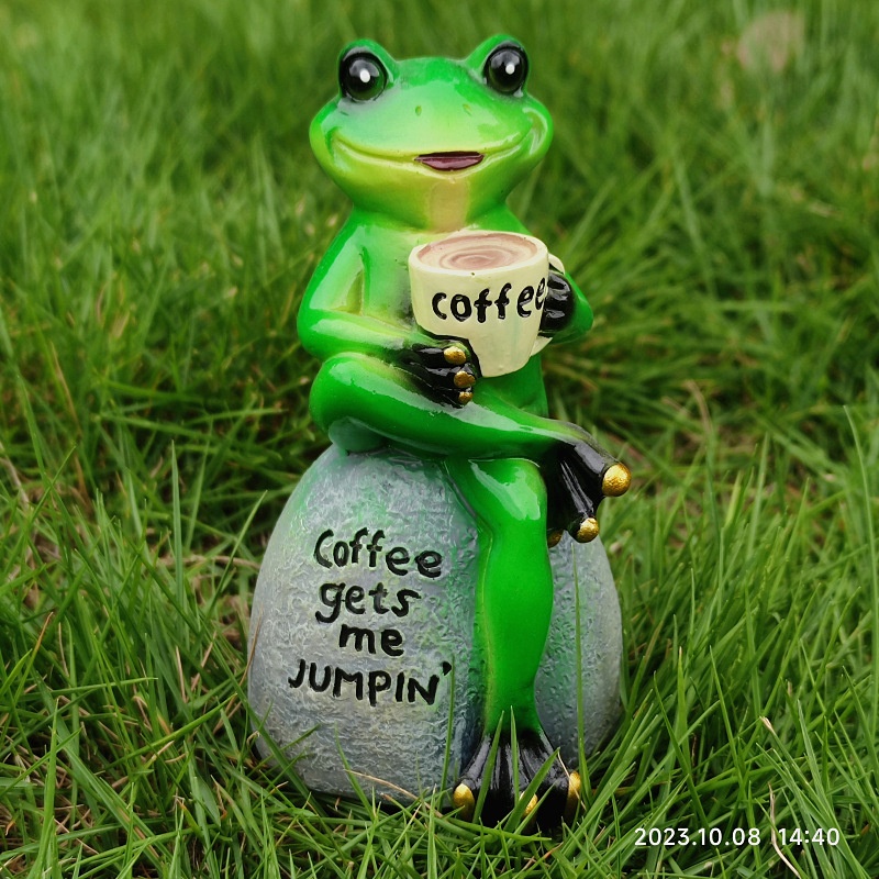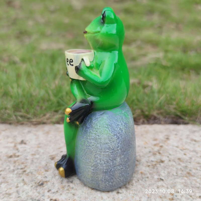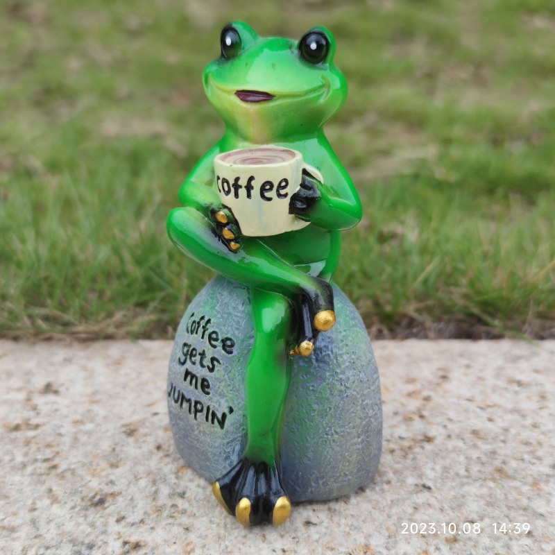 Of Cute Resin Sitting Frog Sitting Stone Statue Resin Sculpture Drinking Coffee Sculpture Garden Ornaments Decoration