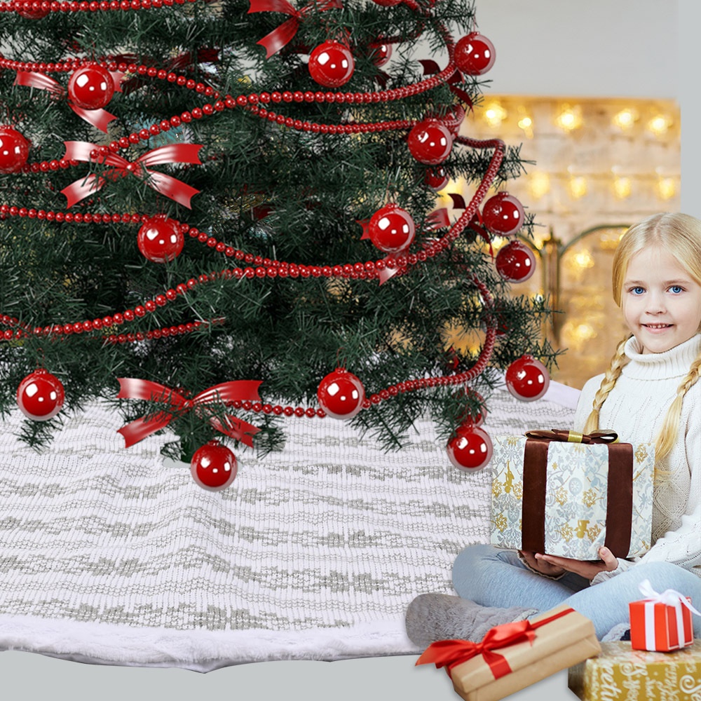 Christmas Decoration Supplies Gray Snowflake Knitted Tree Skirt