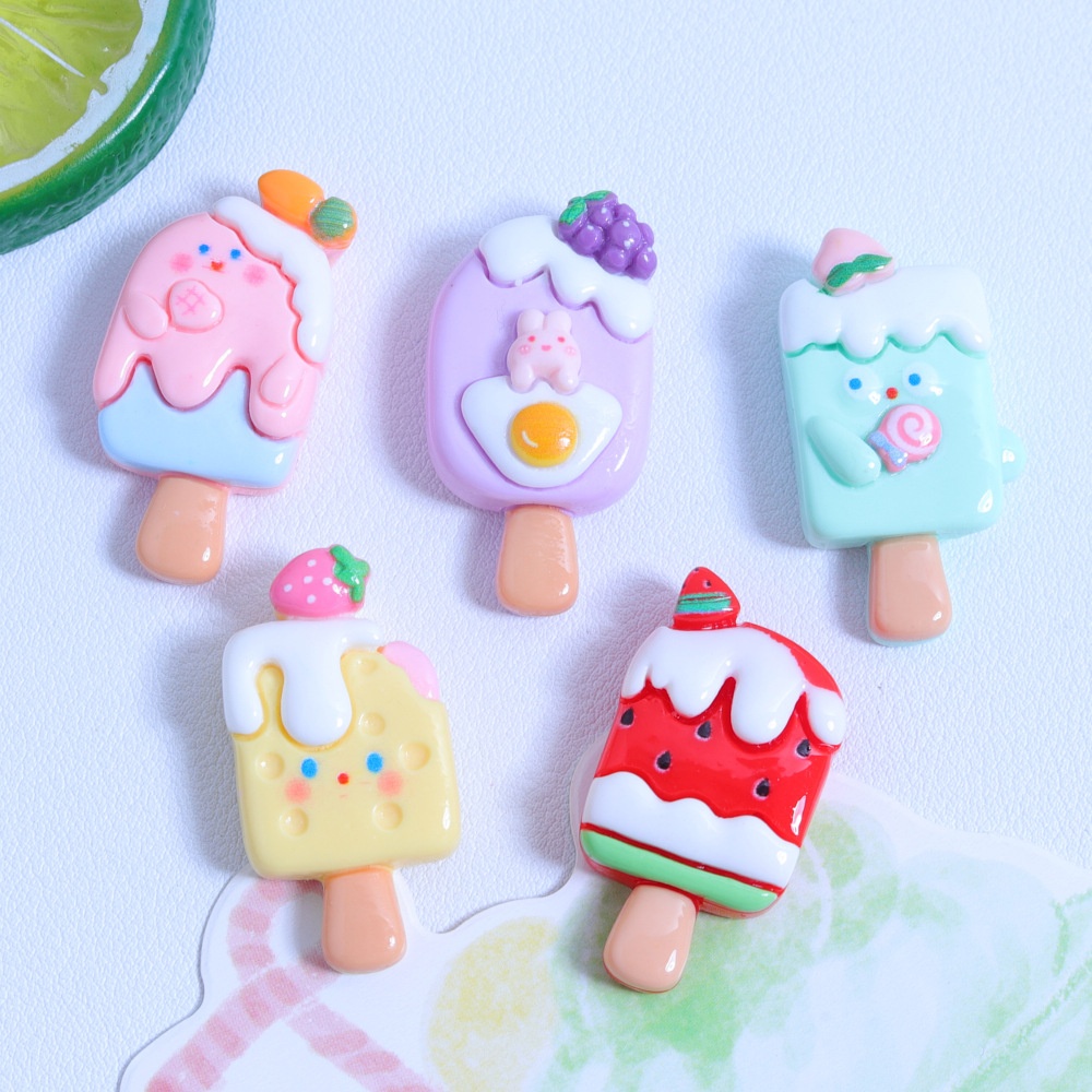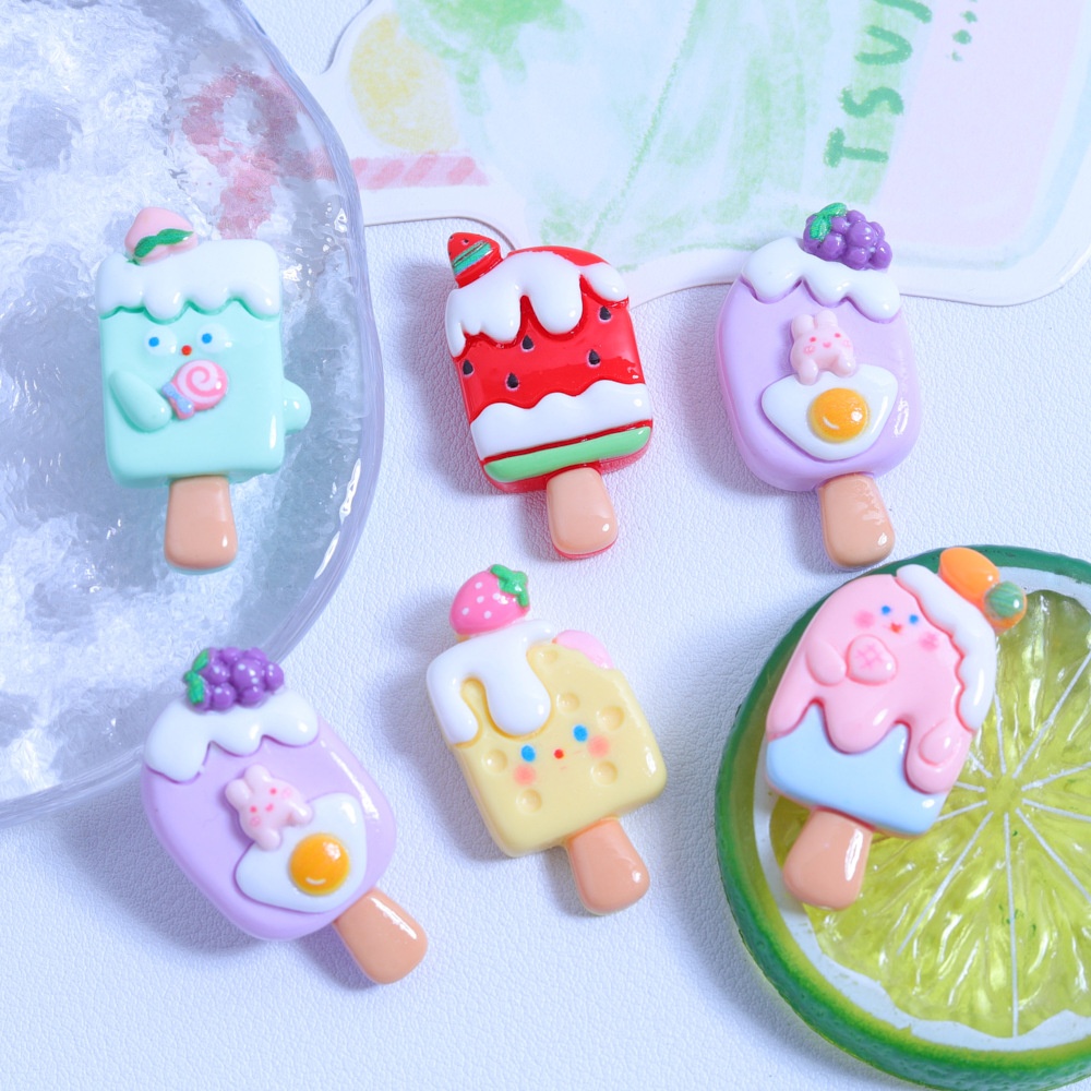 Sweet Ice Cream Cartoon DIYCream Glue Mobile Phone Case Water Cup Sticker Headdress Hairpin Shiny Resin Jewelry Accessories
