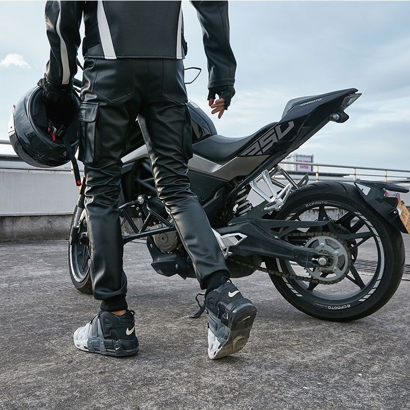 Motorcycle Loose Riding Cargo Leather Pants Man